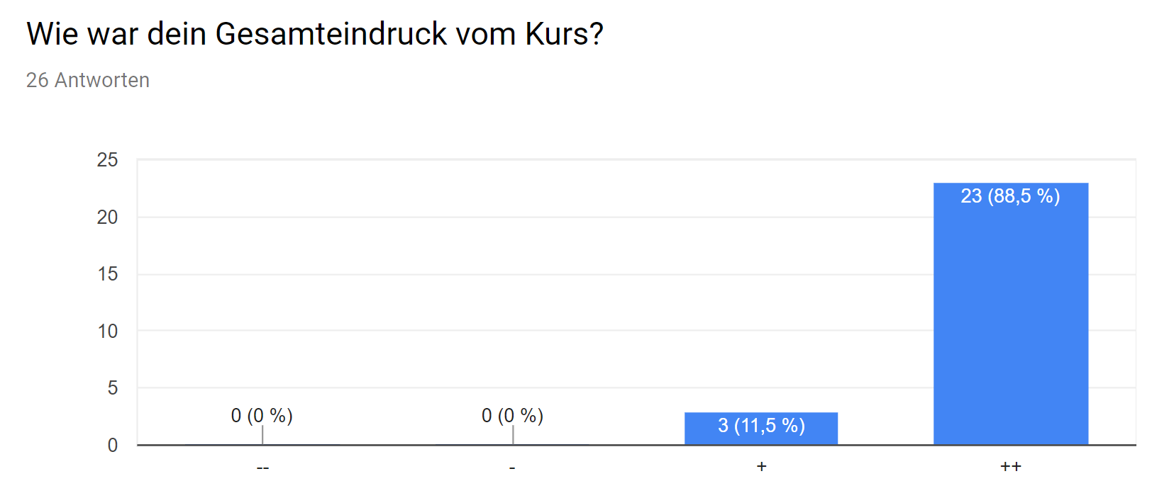 • "Allgemein ist es ein super Kurs & alle geben ihr Bestes! Herzlichen Dank."